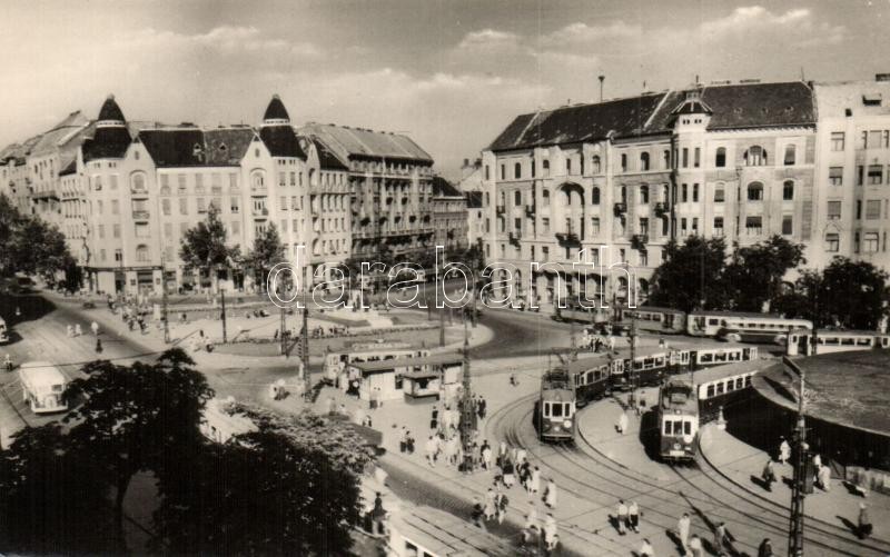 Budapest; Mórizs Zsigmond körtér, Astoria, villamosok, Kossuth híd, Deák tér az Ankert palotával. Képzőművészeti Alap Kiadóvállalat - 5 db modern képeslap / 5 modern postcards