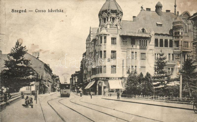 Szeged, Corso Kávéház, villamos, képeslapfüzetből (ázott / wet damage) https://www.darabanth.com/de/287-Fernauktion/287.0/Ansichtskarten/Ungarn~200005/Szeged-Corso-Kavehaz-villamos-kepeslapfuzetbol-azott-wet-damage~II1502399