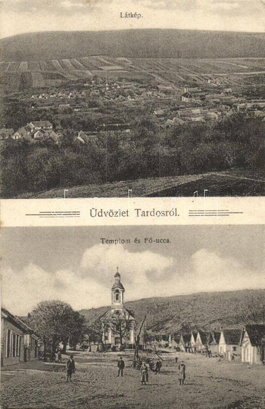 Tardos, Látkép, Templom és fő utca (EK) https://www.darabanth.com/de/287-Fernauktion/287.0/Ansichtskarten/Ungarn~200005/Tardos-Latkep-Templom-es-fo-utca-EK~II1508796