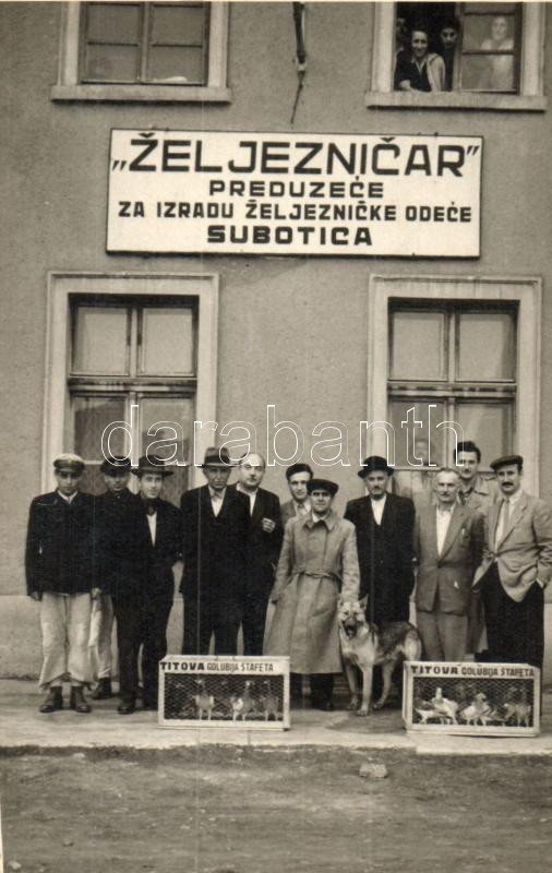 Szabadka, Subotica; Zeljeznicar, preduzece za izradu zeljeznicke odece / Vasúti ruházat készítő cég, üzlet, kutya, postagalambok / Company for making railway clothing, dog, carrier pigeons, Jelisaveta photo