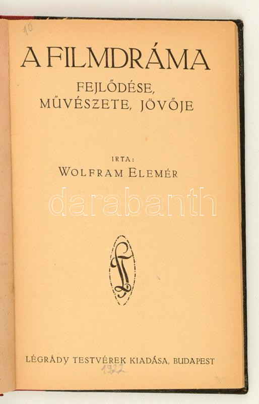 Wolfram Elemér: A filmdráma fejlődése, művészete és jövője. Bp., 1922,... https://www.darabanth.com/de/287-Fernauktion/287.0/Bucher/Bucher-Architektur-Kunst~100033/Wolfram-Elemer-A-filmdrama-fejlodese-muveszete-es-jovoje-Bp-1922-Legrady-Testverek~II1464725