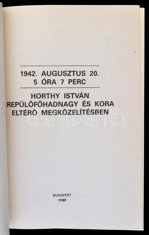1942. augusztus 20. 5 óra 7 perc. Horthy István repülőfőhadnagy és kora eltérő megközelítésben. Összeáll.: Bujtás László. Bp., 1989, Média Kiadó. Papírkötésben, jó állapotban.