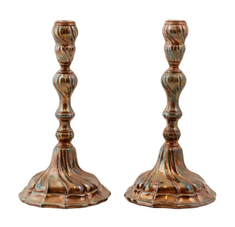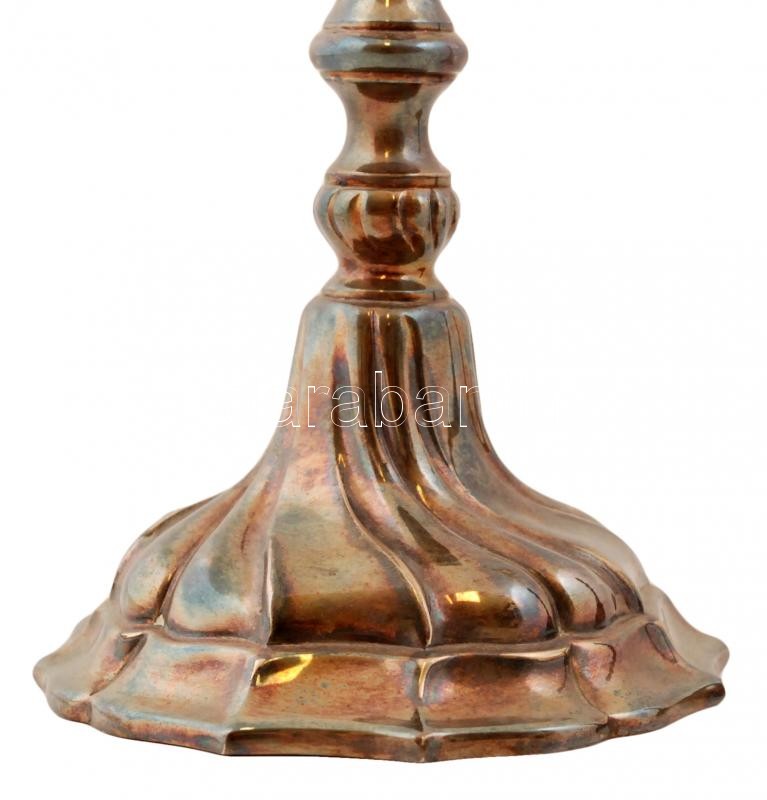 Beschreibung: Ezüst (Ag.) gyertyatartó párban, jelzett, mesterjeggyel (P.V.), m: 26 cm, nettó: 351 g