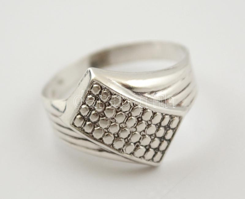 Beschreibung: Ezüst(Ag) négyszögmintás gyűrű, jelzett, méret: 58, nettó: 1,5 g