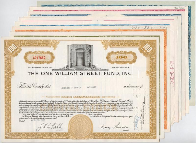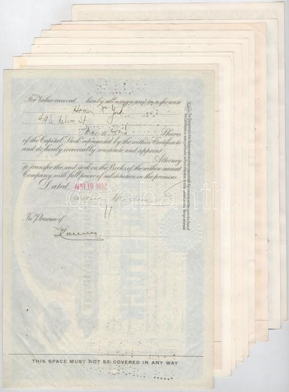 Amerikai Egyesült Államok 1905-1976. 10db klf részvény perforációval, bélyegzésekkel, lyukasztással érvénytelenítve T:I-II