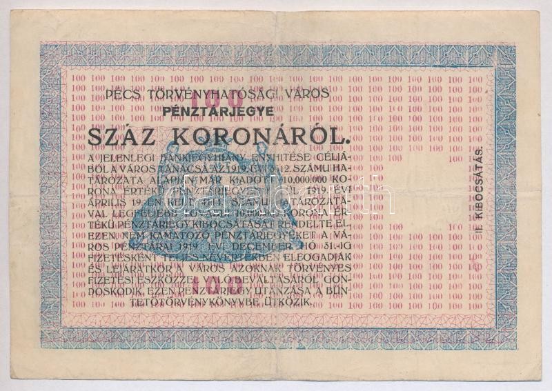 Hungary / Pécs 19.04.1919 100 Korona "Receipt" star before serial number, 2nd issue C:F