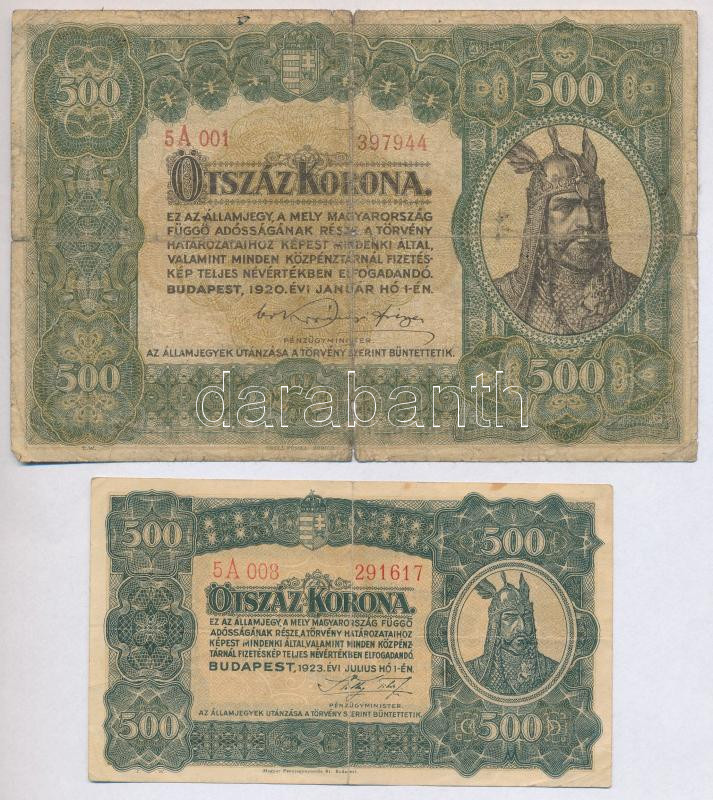 1920. 500K "Orell Füssli Zürich", alacsony sorozatszám + 192... https://www.darabanth.com/de/287-Fernauktion/287.0/Numismatik/Ungarische-Banknoten~500002/1920-500K-Orell-Fussli-Zurich-alacsony-sorozatszam-plus-1923-500K-Magyar-Penzjegynyomda-Rt-B~II1508423