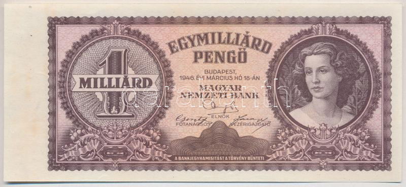 1946. 1.000.000.000P baloldali ívszéllel, sorozat és sorszám nélkül T:... https://www.darabanth.com/de/287-Fernauktion/287.0/Numismatik/Ungarische-Banknoten~500002/1946-1000000000P-baloldali-ivszellel-sorozat-es-sorszam-nelkul-TI~II1506245