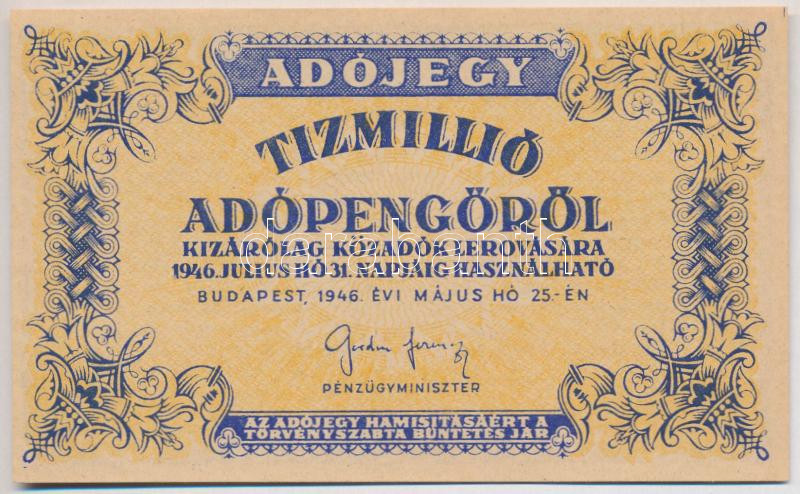 Adamo P54A https://www.darabanth.com/de/287-Fernauktion/287.0/Numismatik/Ungarische-Banknoten~500002/1946-10000000AP-forditott-cimer-TI-I---Adamo-P54A~II1508409