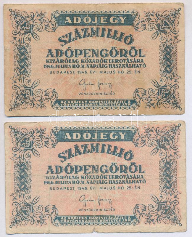 1946. 1.000.000AP fordított címer + 10.000.000AP + 100.000.000AP (2x) ... https://www.darabanth.com/de/287-Fernauktion/287.0/Numismatik/Ungarische-Banknoten~500002/1946-1000000AP-forditott-cimer-plus-10000000AP-plus-100000000AP-2x-TIII-III-~II1507375