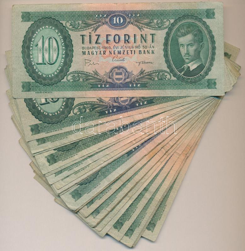 1962-1969. 10Ft (30x) T:III,III- https://www.darabanth.com/de/287-Fernauktion/287.0/Numismatik/Ungarische-Banknoten~500002/1962-1969-10Ft-30x-TIII-III-~II1508811