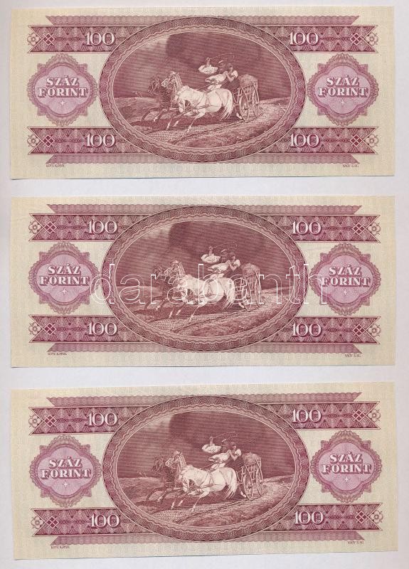 1992. 100Ft (5x) sorszámkövetők, nyomdai papírránccal T:I https://www.darabanth.com/de/287-Fernauktion/287.0/Numismatik/Ungarische-Banknoten~500002/1992-100Ft-5x-sorszamkovetok-nyomdai-papirranccal-TI~II1507331