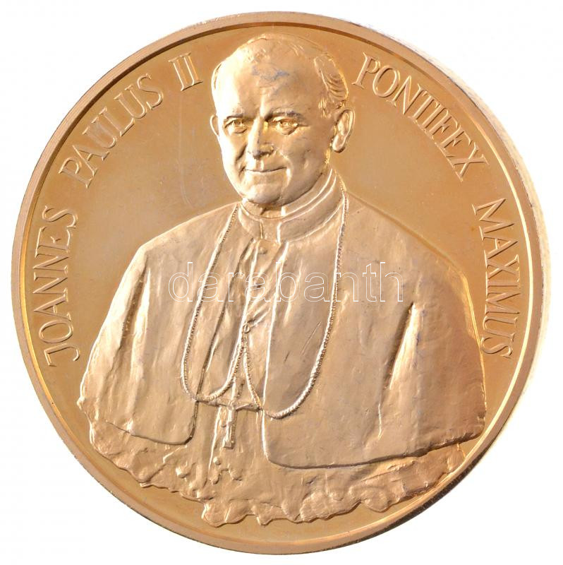 Kiss Sándor (1925-1999) 1991. "II. János Pál pápa / A Szentatya Szombathelyen 1991. aug. 19." aranyozott Br emlékérem tokban (65mm) T:2(PP) karc, ujjlenyomat