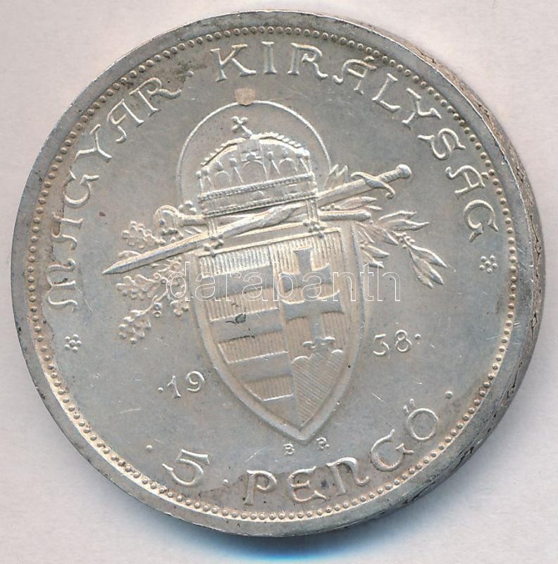 Beschreibung: 1938. 5P Ag "Szent István" T:1-,2 kis ph.