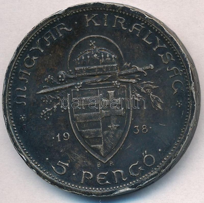 1938. 5P Ag "Szent István" T:2,2- több durva ph., patina https://www.darabanth.com/de/287-Fernauktion/287.0/Numismatik/Ungarische-Munzen-und-Munzen-mit-ungarischem-Munzzeichen~500003/1938-5P-Ag-Szent-Istvan-T2-2-tobb-durva-ph-patina~II1501746