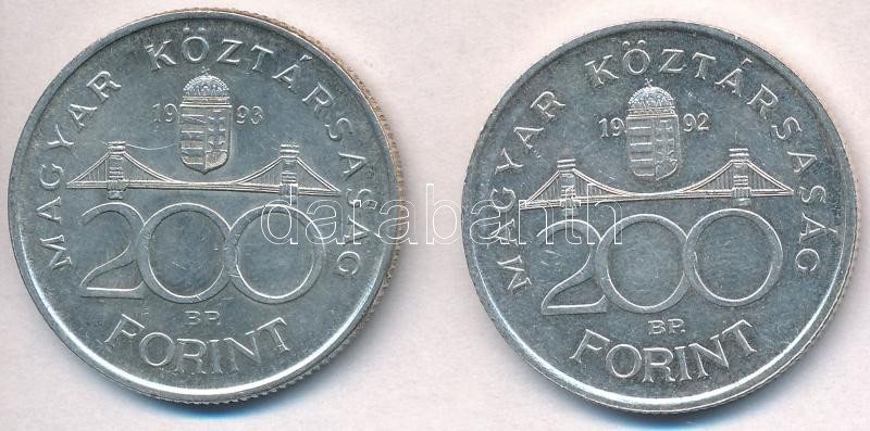 Beschreibung: 1992-1993. 200Ft Ag "MNB" (2x) T:2