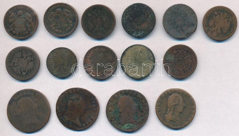 Beschreibung: Vegyes: 14db-os rossz minőségű magyar és osztrák rézpénz tétel, közte 1868KB 1kr Cu "Angyalos címer" (2x), 1858B-1861B 1kr Cu (4x) T:2--4