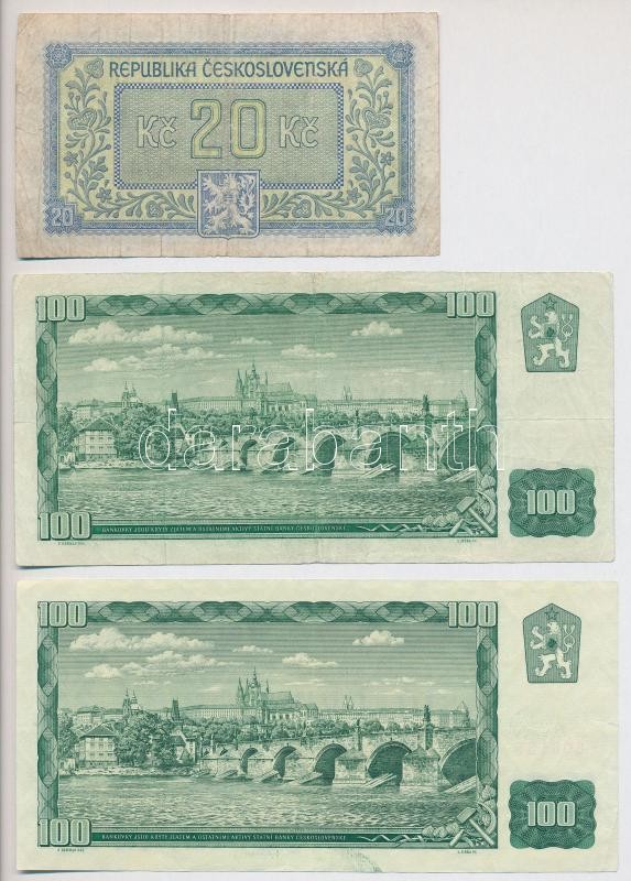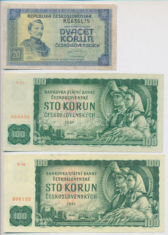 Czechoslovakia 1... https://www.darabanth.com/de/287-Fernauktion/287.0/Numismatik/Weltweit-Banknoten~300013/Csehszlovakia-1945-20K-plus-1961-100K-5x-TIII-III---Czechoslovakia-1945-20-Korun-plus-1961-100-Kor~II1502602