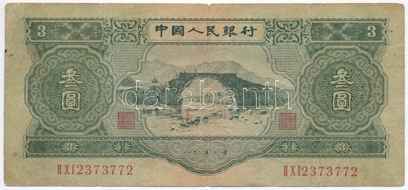 China / Peoples Republic 1953. 3... https://www.darabanth.com/de/287-Fernauktion/287.0/Numismatik/Weltweit-Banknoten~300013/Kinai-Nepkoztarsasag-1953-3Y-TIII---China-Peoples-Republic-1953-3-Yuan-CVF--Krause-868~II1506975