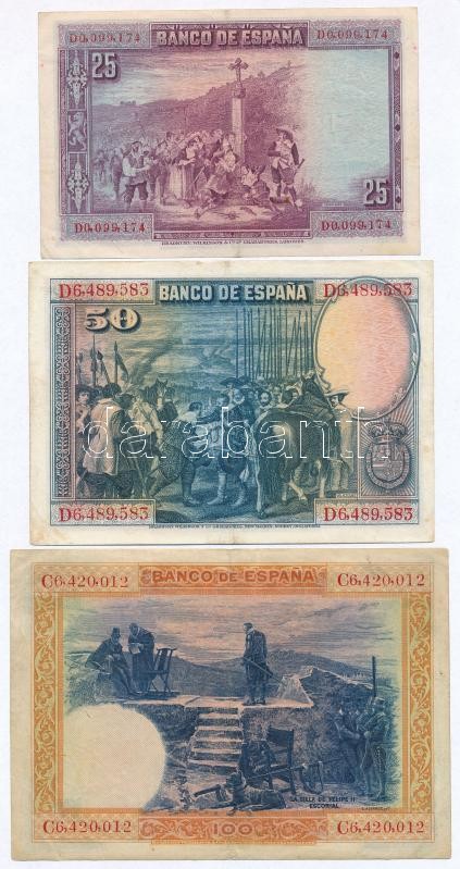Spain 1928. 25 P... https://www.darabanth.com/de/287-Fernauktion/287.0/Numismatik/Weltweit-Banknoten~300013/Spanyolorszag-1928-25P-plus-50P-plus-1925-100P-TII-III--Spain-1928-25-Pesetas-plus-50-Pesetas-plus-1925-1~II1508484