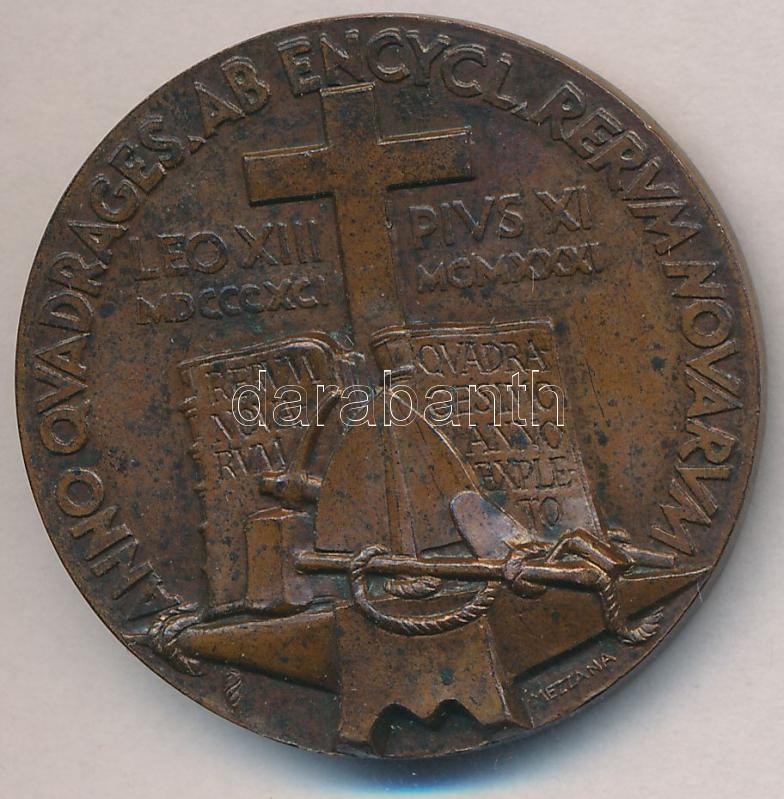 Vatikán 1931. "Quadragesimo anno" Br emlékérem, a Rerum novarum kiadásának negyvenedik évfordulója alkalmából kiadott pápai körlevélről (37mm). Szign.: Mezzana T:2