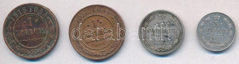 Orosz Birodalom 1909. 10k Ag + 1911. 5k Ag + 1912. 1k Cu + 1915. 1k Cu T:2,2- ph.