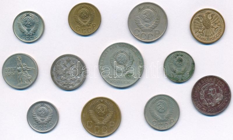 Orosz Birodalom / Szovjetunió ~1900-1982. 3k-1R 12db-os vegyes fémpénz tétel, közte Szovjetunió 1967. 50k Cu-Ni-Zn "A forradalom 50. évfordulója" T:2,2-