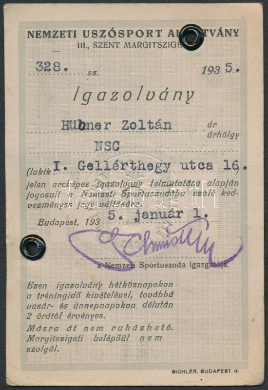1935 Bp., A Nemzeti Úszósport Alapítvány kedvezményes jegy váltására j... https://www.darabanth.com/de/288-Fernauktion/288.0/Andere-Sammelgebiete/Dokument~16/1935-Bp-A-Nemzeti-Uszosport-Alapitvany-kedvezmenyes-jegy-valtasara-jogosit-igazolvanya~II1514849