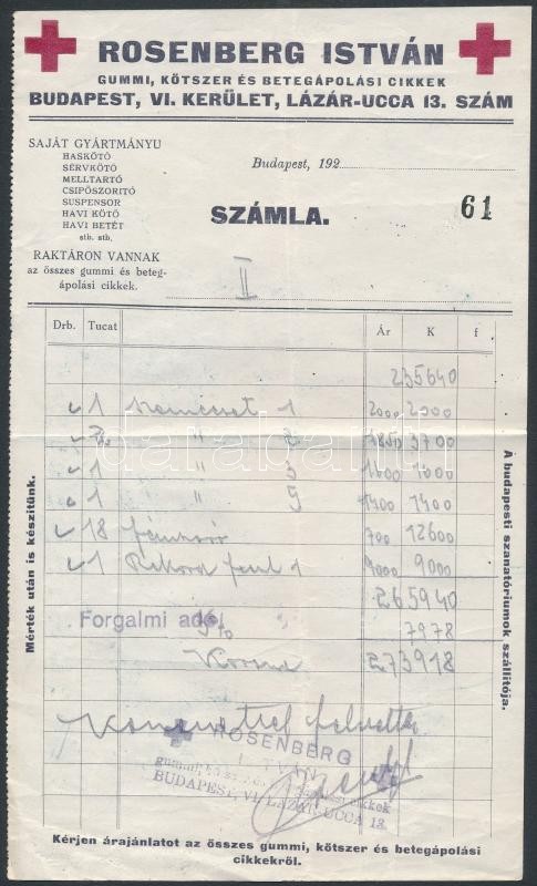 cca 1920-1923 Bp. VI., Rosenberg István Gummi, Kötszer és Betegápolási... https://www.darabanth.com/de/288-Fernauktion/288.0/Andere-Sammelgebiete/Dokument~16/cca-1920-1923-Bp-VI-Rosenberg-Istvan-Gummi-Kotszer-es-Betegapolasi-Cikkek-uzlete-altal-ki~II1514899