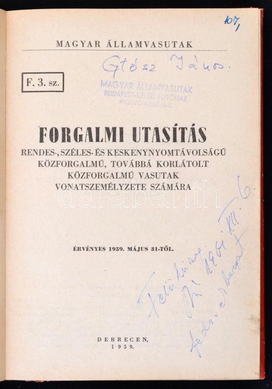 1959 Magyar Államvasutak Forgalmi utasítás rendes-, széles- és keskeny... https://www.darabanth.com/de/288-Fernauktion/288.0/Andere-Sammelgebiete/Drucksachen~27/1959-Magyar-Allamvasutak-Forgalmi-utasitas-rendes--szeles-es-keskenynyomtavolsagu-kozforg~II1516748
