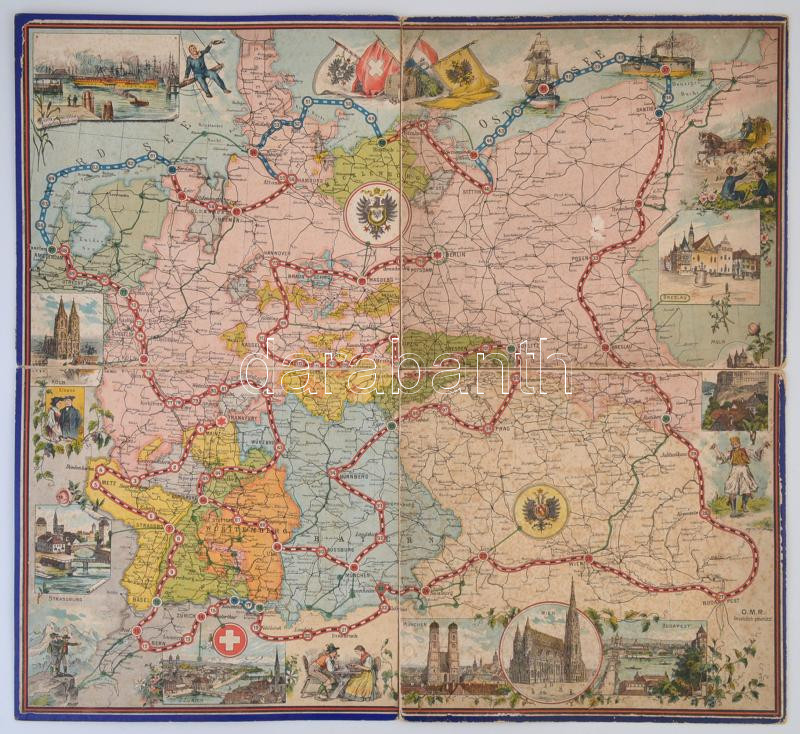 cca 1900 Kalandozás Németország területén, régi társasjáték táblája, s... https://www.darabanth.com/de/288-Fernauktion/288.0/Andere-Sammelgebiete/Drucksachen~27/cca-1900-Kalandozas-Nemetorszag-teruleten-regi-tarsasjatek-tablaja-szakadt-63x58-cm~II1516765