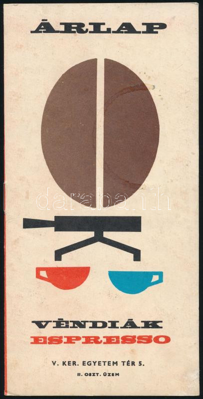 cca 1970 Véndiák Espresso étlap https://www.darabanth.com/de/288-Fernauktion/288.0/Andere-Sammelgebiete/Drucksachen~27/cca-1970-Vendiak-Espresso-etlap~II1517943
