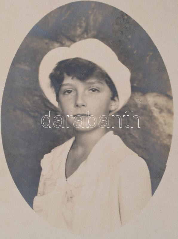 Beschreibung: 1924 Habsburg Ottó (1912-2011) eredeti fotója nevelőjétől, dr. Zsámboky Páltól, hátoldalán feliratozva / Original photo of Otto von Habsburg 14x9 cm