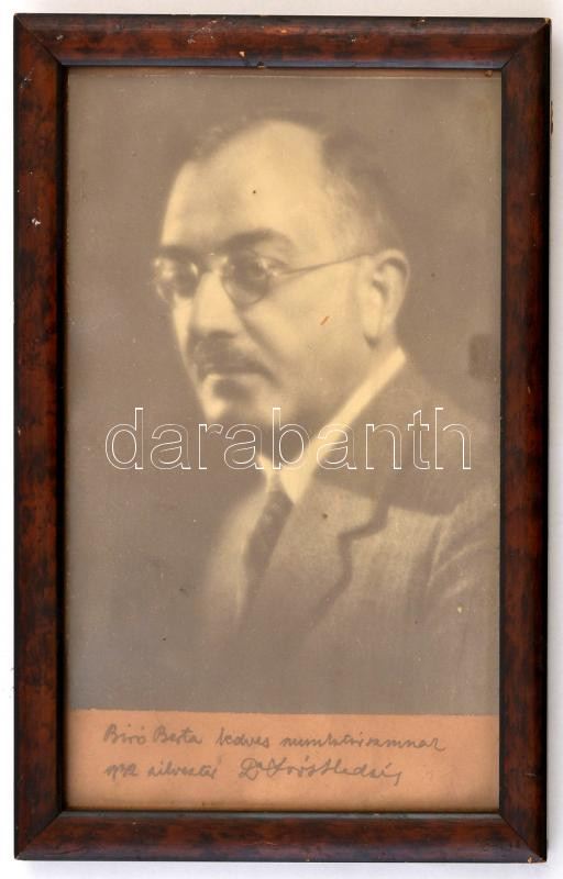 Beschreibung: Dr Soós Aladár (1890-1967) a dietetikai rendszer megalkotója, üvegezett fotó ajánlással, 17×13 cm