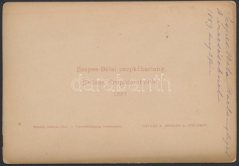 cca 1880-1890 Szepesbélai cseppkőbarlang, keményhátú fotó Divald Károl... https://www.darabanth.com/de/288-Fernauktion/288.0/Andere-Sammelgebiete/Foto~19/cca-1880-1890-Szepesbelai-cseppkobarlang-kemenyhatu-foto-Divald-Karoly-mutermebol-hatul~II1519006