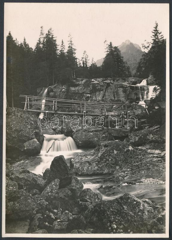 Beschreibung: cca 1910-1915 Magas-Tátra, a tarpataki 2. vízesés, Erdélyi Mór felvétele, hátulján feliratozva, 11,5×16 cm