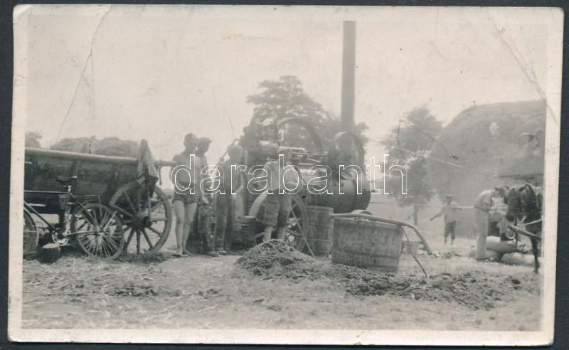 cca 1930-1950 Gőzgépes cséplés, fotó, 6,5×10,5 cm https://www.darabanth.com/de/288-Fernauktion/288.0/Andere-Sammelgebiete/Foto~19/cca-1930-1950-Gozgepes-cseples-foto-6-5C39710-5-cm~II1517513