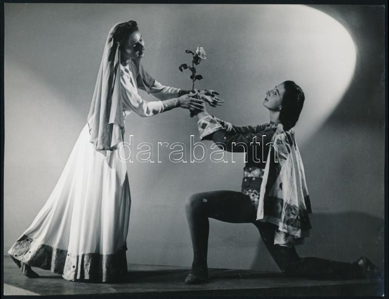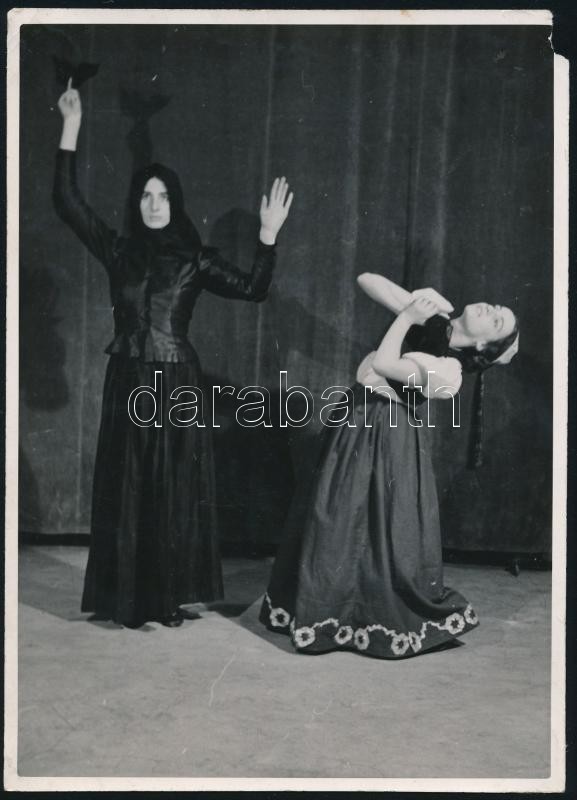 cca 1935 Leichtner Erzsébet vintage fotója Szentpál Olga tánccsoportjának tagjairól, pecséttel jelzett, 17,5x23 cm + hozzáadva Merényi Lea feliratú vintage képet a Szentpál archívumból, sarka sérült, 17x13 cm
