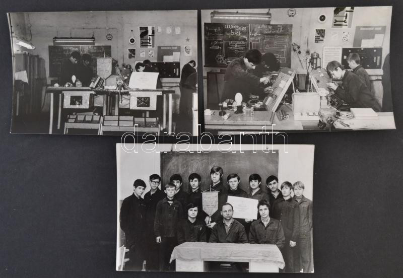 Beschreibung: cca 1970 Villanyszerelő tanműhely, Kiváló Tanműhely mozgalomban elért II. helyezett, 3 db fotó, 9x14 cm