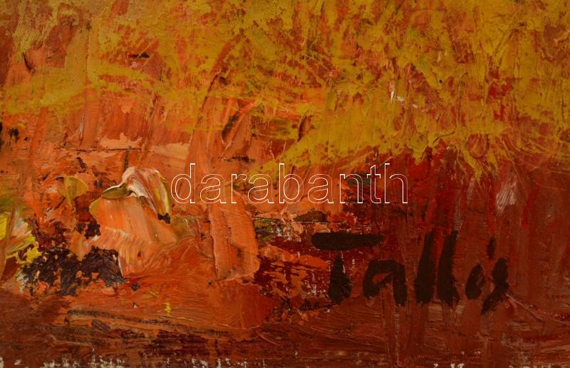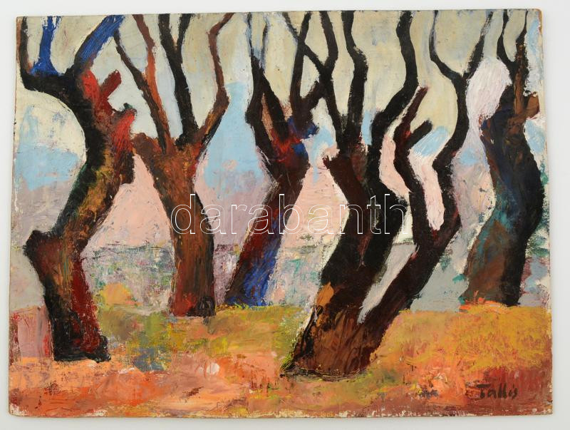 Beschreibung: Tallós Ilona (1918-1991): Sióparti fák. Olaj, farost, jelzett, 30×40 cm