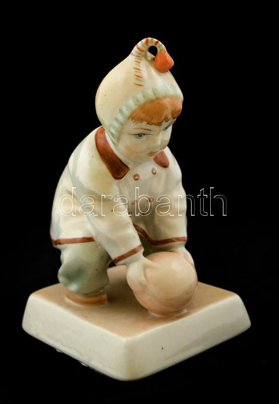 Beschreibung: Zsolnay labdázó kisfiú, kézzel festett, jelzett, apró kopásnyomokkal, m: 13 cm
