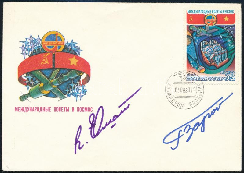 Pham Tuân (1947- ) vietnámi és Viktor Gorbatko (1934-2017) szovjet űrhajósok aláírásai emlékborítékon /