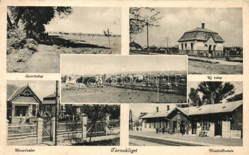 Tárnokliget, Tárnok; Sporttelep, Új telep, Vasútállomás, Utcarészlet (... https://www.darabanth.com/de/288-Fernauktion/288.0/Ansichtskarten/Ungarn~200005/Tarnokliget-Tarnok-Sporttelep-Uj-telep-Vasutallomas-Utcareszlet-EK~II1514908