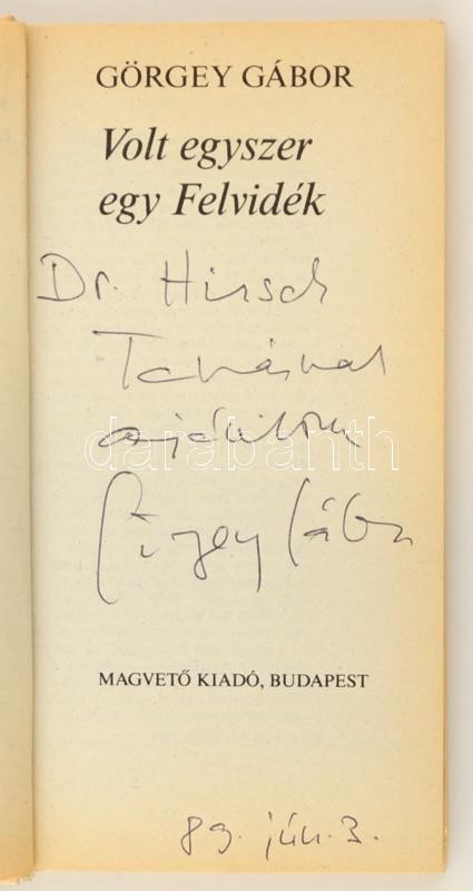 Görgey Gábor: Volt egyszer egy Felvidék. Bp., 1989, Magvető. A szerző ... https://www.darabanth.com/de/288-Fernauktion/288.0/Bucher/Bucher-Andere~43/Gorgey-Gabor-Volt-egyszer-egy-Felvidek-Bp-1989-Magveto-A-szerzo-dedikaciojaval-Karton~II1513243