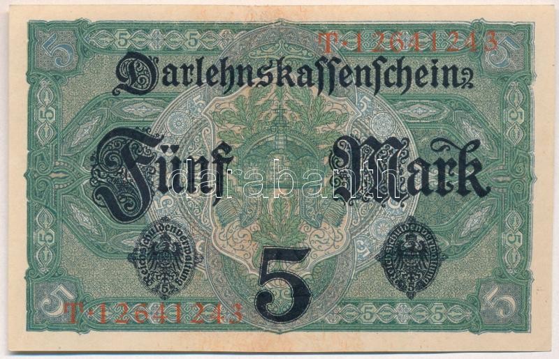 German Empire 1917. 5 Mark C:AU https://www.darabanth.com/de/288-Fernauktion/288.0/Numismatik/Weltweit-Banknoten~300012/Nemet-Birodalom-1917-5M-TI---German-Empire-1917-5-Mark-CAU~II1517764
