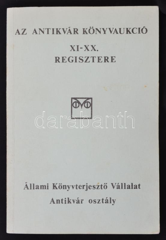 1987 Kárpáti Miklós (szerk.): Az antikvár könyvaukció XI-XX. regisztere. h. n., 1987, Állami Könyvterjesztő Vállalat Antikvár osztály. Kiadói papírkötésben.