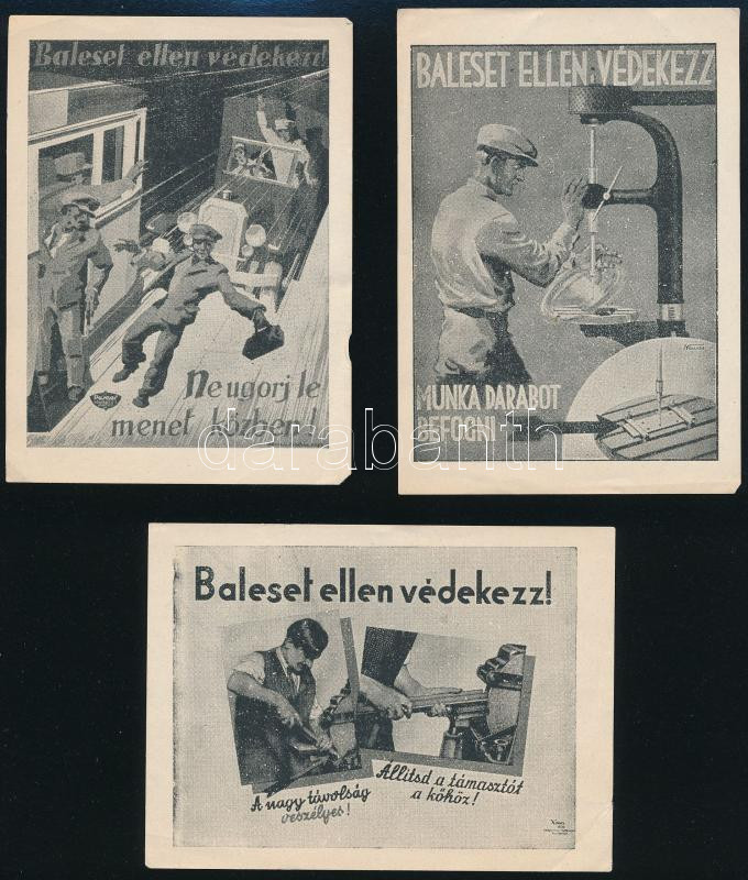 cca 1940 Baleset ellen védekezz. 3 röplap 6x9 cm https://www.darabanth.com/de/289-Fernauktion/289.0/Andere-Sammelgebiete/Drucksachen~28/cca-1940-Baleset-ellen-vedekezz-3-roplap-6x9-cm~II1521200