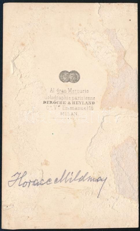 Beschreibung: cca 1865 Horace Mildmay vadászat előtt, Beroche és Heyland milánói műtermében készült, vizitkártya méretű fénykép, feliratozva, 10x6 cm