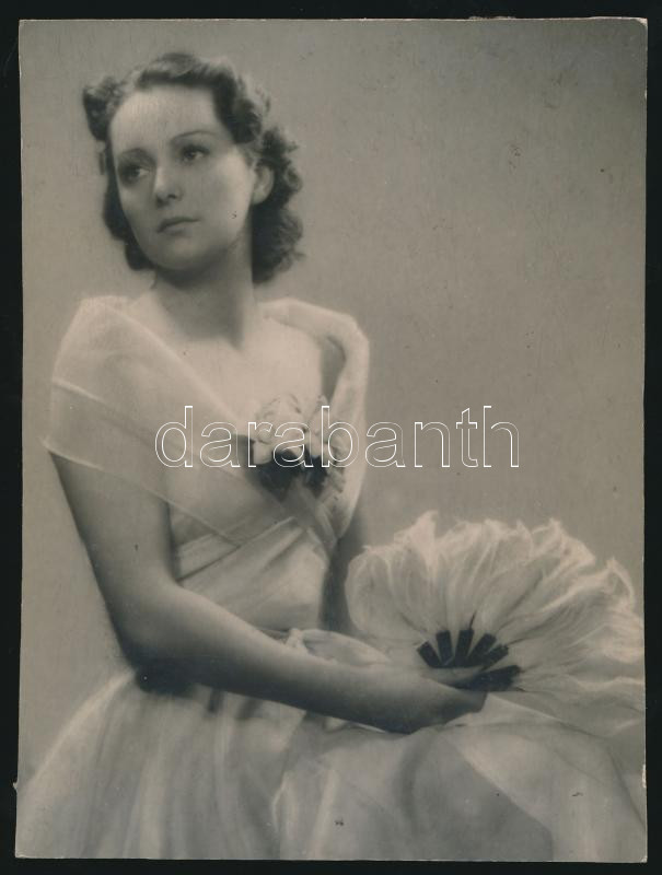 cca 1940 Hölgy legyezővel, jelzés nélküli divatfotó, 17x13 cm. https://www.darabanth.com/de/289-Fernauktion/289.0/Andere-Sammelgebiete/Foto~20/cca-1940-Holgy-legyezovel-jelzes-nelkuli-divatfoto-17x13-cm~II1507984