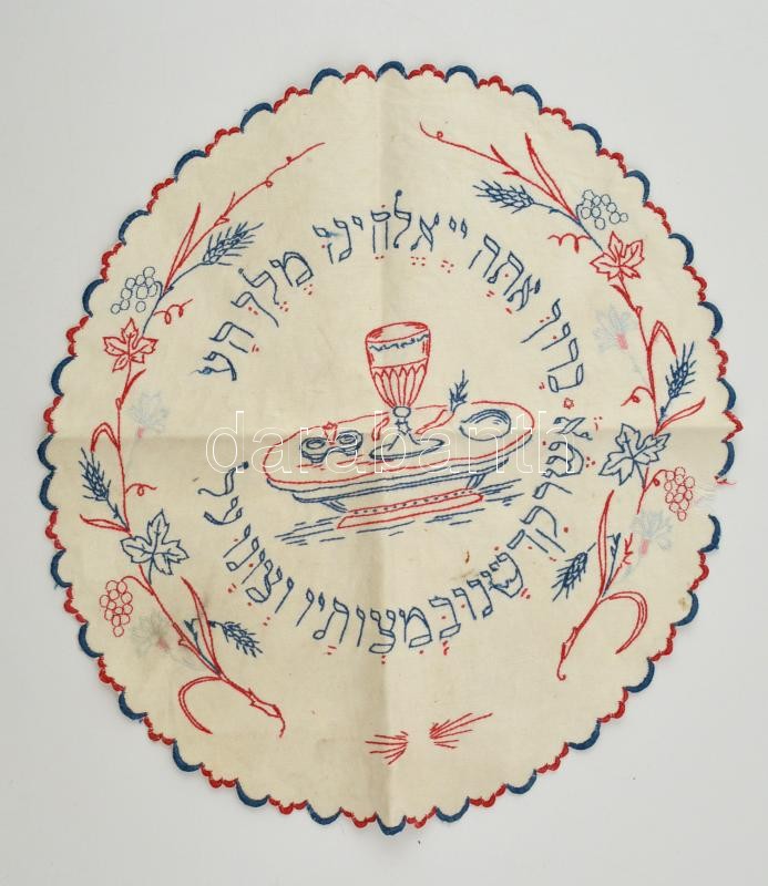 Hímzett macesztakaró, szakadással, 38x35 cm https://www.darabanth.com/de/289-Fernauktion/289.0/Andere-Sammelgebiete/Judaica~24/Himzett-macesztakaro-szakadassal-38x35-cm~II1525576